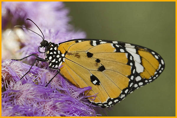 BIOLOGIA: Gli adulti si nutrono di nettare di fiori e depongono le uova su varie piante velenose della famiglia delle Asclepiadaceae, tra cui Asclepias fruticosa.
