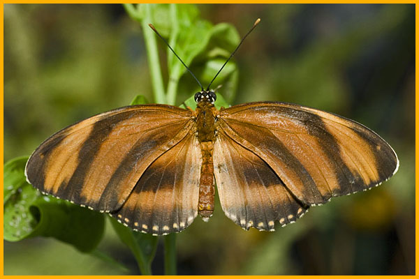 BIOLOGIA: Gli adulti hanno un volo piuttosto lento e possono essere allevati in serra molto facilmente. Durante le ore di attività visitano frequentemente i fiori di Lantana, Pentas e di diverse altre piante. Le uova vengono deposte singolarmente sulle foglie di Passiflora biflora, P. trifasciata, P. talamacensis e altre specie affini. I caratteristici bruchi sono di colore rosso vinaccio, con il capo arancione e le spine nere. Le crisalidi, di colore grigio, sono prive di spine e presentano un paio di lobi sul capo.