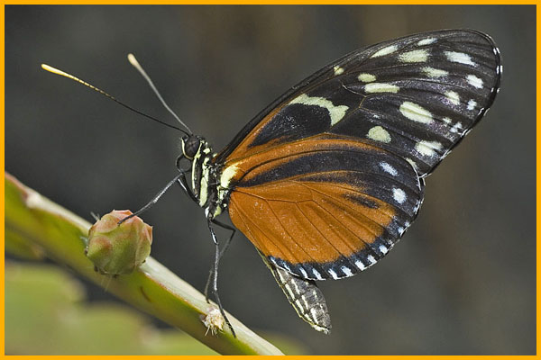 BIOLOGIA: Gli adulti hanno un volo lento e si posano frequentemente sui fiori di Lantana, Pentas, Psiguria e di altre piante. Come molte specie di Heliconinae, essi si nutrono sia di nettare che di polline e possono vivere per diverse settimane. Le uova vengono deposte singolarmente o a piccoli gruppi sui germogli di varie specie di Passiflora (P. auriculata, P. oerstedii, P. platyloba, P. edulis, ecc.). I bruchi sono di colore bianco, con spine nere e capo arancione. La crisalide è di colore marrone chiaro, ricoperta di piccole spine e con un paio di corti lobi sul capo.