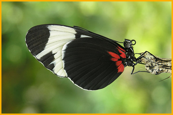 BIOLOGIA: Le uova vengono deposte singolarmente sui germogli di Passiflora vitifolia, P. pittieri e altre specie affini. Le crisalidi sono di colore bianco con piccole spine nere ed un paio di corti lobi sul capo.